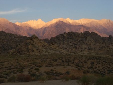 Lone Pine - Death Valley - Las VegasEntweder waren nachts keine Bären unterwegs gewesen oder der Nachbarshund hatte verschlafen, auf jeden Fall fanden wir am Morgen alles unversehrt vor. Und sonderlich kalt war es auch nicht gewesen, kein Vergleich zur Mono Lake Region.
