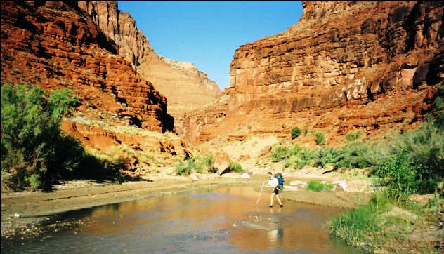 Wir hatten mit zum Teil hüfttiefem Wasser gerechnet und sahen auch der Jauchengrube (Cesspool), wo man bis zu den Oberschenkeln (da fragt man sich wie lang die Beine sind – meine sind eher kürzerer Natur) durch schlickiges Brackwasser waten sollte, mit gemischten Gefühlen entgegen. Aber das war zuviel der Sorge; der Sommer war doch sehr trocken und der letzte Regen schon eine ganze Weile her; wo nun der Cesspool ist, haben wie nie herausgefunden; durch Wasser mussten wir bis zum Zufluss des Paria River höchst selten waten und wirklich tief war das Fußbad dann zum Glück auch nicht.