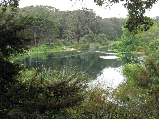 Wir fahren dann noch ein Stück in den Golden Gate Park hinein, gehen an ein paar Seen entlang und halten Ausschau nach den Bisons, die sich weit zurückgezogen haben. Das insgesamt sehr triste Wetter macht uns nicht so richtig unternehmungslustig, so daß wir angesichts der zunehmend zugeparkten Straßenränder keine weiteren Aufenthalte einlegen, sondern im Stop-and-Go Kurs auf den Flughafen nehmen.