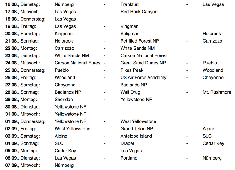 1. Statt 3 Tage LV und anschließender Übernahme des Wohnmobils gleich Übernahme des Wohnmobils und LV am Schluss. Dadurch Verlust des Frühbucherrabattes, außerdem Vegas am Wochenende mit entsprechenden Preisen.