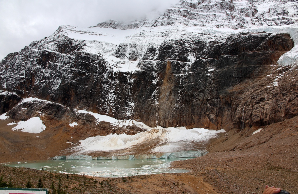 => Fahrzeit je ca. 1/2 Stunde ab dem Icefield Parkway; oben sind wir nur bis zu dem Aussichtspunkt gelaufen und haben uns dort gute 20 Minuuten aufgehalten. Bei schönerem Wetter kann man da aber auch verschiedene Wanderungen von kurz bis lang unternehmen - nur zum Gletschersee darf man nicht mehr und manche Ecken können wegen Bärenaktivität gesperrt sein.