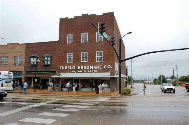 Hier der Hardware-Store, in dem Gladys Presley die Gitarre zum 11. Geburtstag für Elvis kaufte (Ausläufer des Hurrican Ike begleiteten uns)