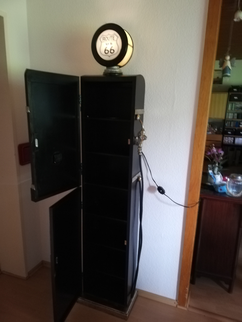 Über eine Zapfsäule hatte ich auch schon nachgedacht, nur wollte ich nicht, dass dann Route 66 oben in der beleuchteten Kugel steht, sondern der Name einer Kraftstoffmarke (also wenn 66, dann wenigstens im Design der Tankstellenkette 66). Mein Liebling war da Sinclair. Und als ich bestellen wollte, war sie ausverkauft.
