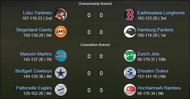 Auch wenn heute noch gespielt wird, werde ich das 3:11 gegen Siegen nicht mehr aufholen können - zumindest nicht in den Batting Stats. Wäre ja aber auch keine Schande, gegen den Vorjahresmeister rauszufliegen.
