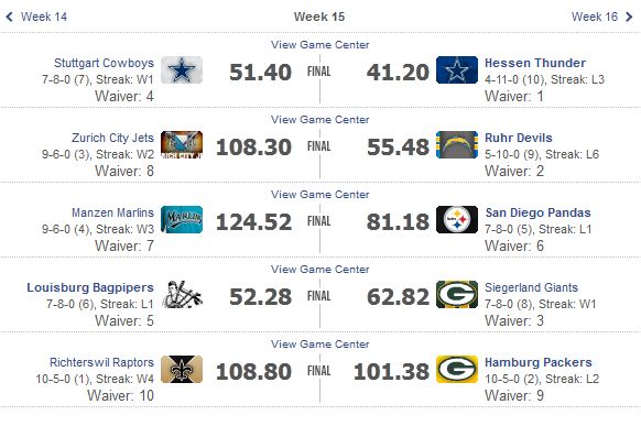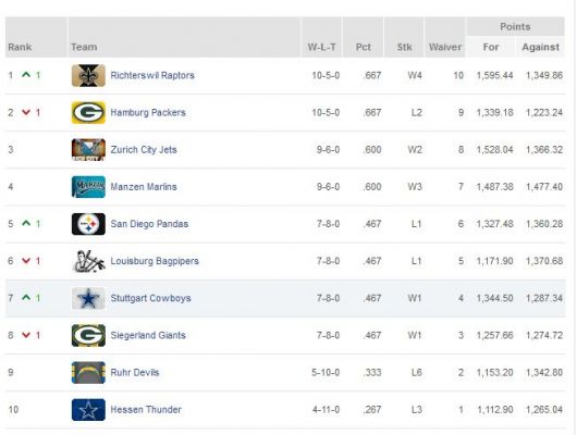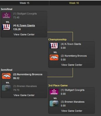 Meine Bilanz beim Fantasyfootball ist aber wieder nicht ganz so schlecht, hier zumindest wieder Halbfinale und bei ESPN in einer anderen
