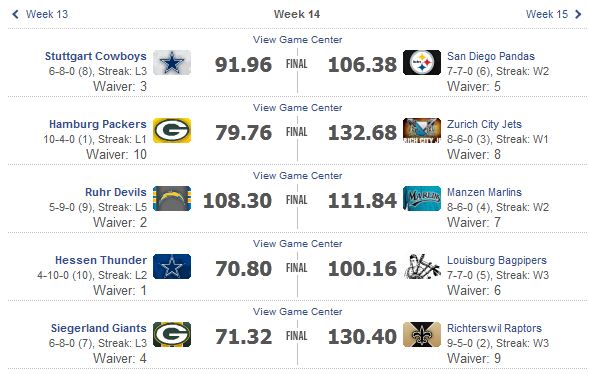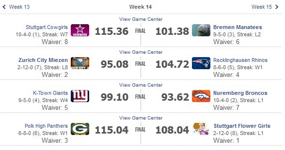 Und hier die Ergebnisse aus Woche 14, Liga 1: