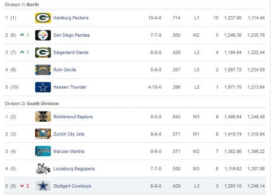 Die Ruhr Devils und die Hessen Thunder müssen evtl. übernächste Woche nochmal ran und den 9. Platz ausspielen.