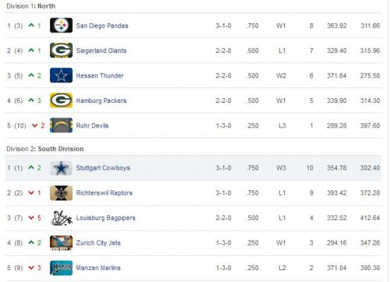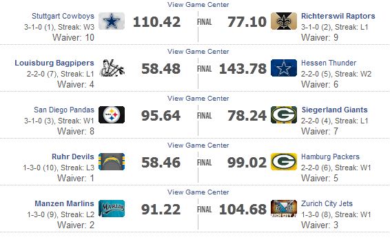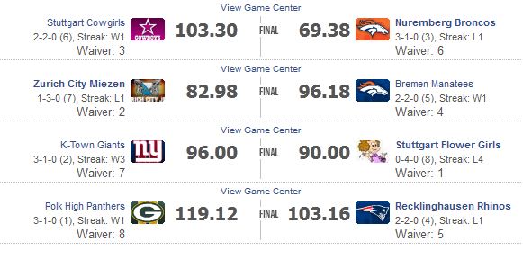 So langsam neigt sich auch Woche vier dem Ende, interessanterweise mit erstaunlich hohen Scores, dafür, dass es ne Bye Week war...