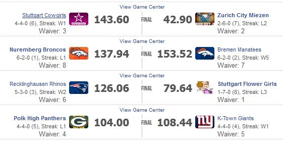 Die Raptoren holten Sage und Schreibe 161 Punkte im Spiel gegen die Marlins - und gleichzeitig geht deren Siegeszug jäh zu Ende! Knapp ging es in der Partie San Diego gegen die Ruhr Devils zu - Not gegen Elend hiess es hingegen in der Partie Stuttgart gegen Ludwigsburg! Überraschen verloren die Packers gegen die Hessen Thunder!