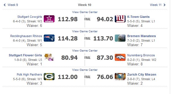 Hier die Ergebnisse aus Woche 10 - Liga 1: