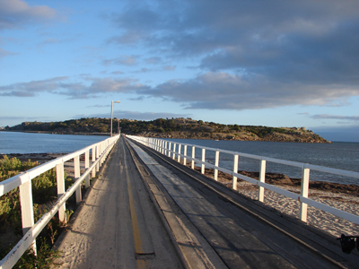 Die Brücke nach Granite Island vor Victor Harbor (SA).