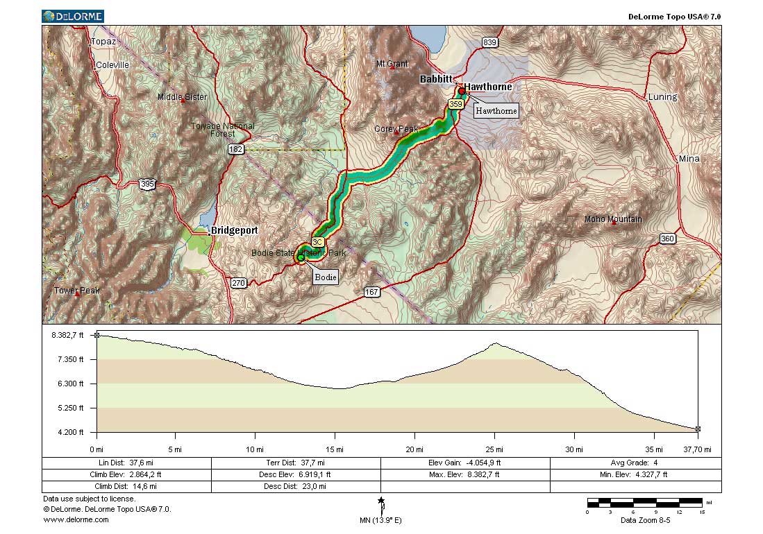 Hier das Profil der Strecke aus Topo USA 7.0