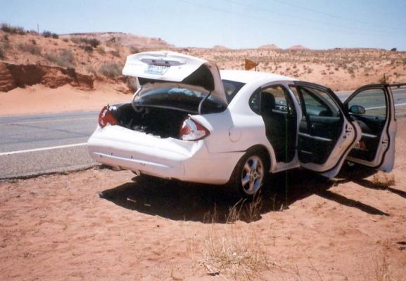 2002 auf dem Weg vom Antelope Canyon nach Page passiert, Beweis siehe unten
