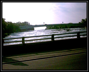 Ich stehe hier auf einer Brücke über den Niagara River im