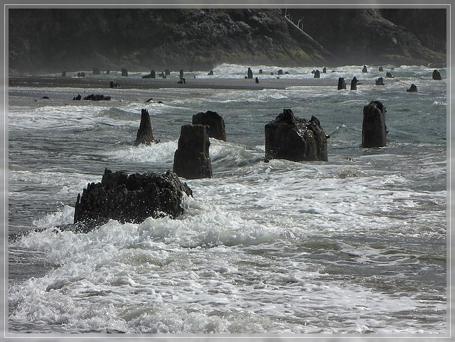 Habe ehrlich gesagt überhaupt keine Ahnung. War die Flut vielleicht höher als der Tsunami dieses Jahr von Japan aus die Küste Oregons erreicht hat und ist deswegen auf dem Bild etwas unter Wasser, was sonst so nicht unter Wasser ist???