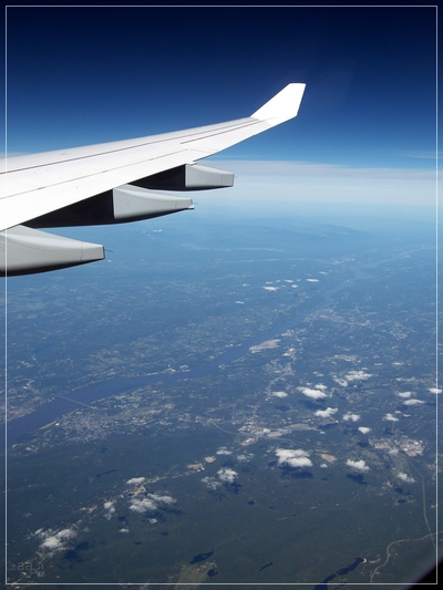 imho eher zu weit östlich. Man müßte aber wirklich etwas mehr über die tatsächliche Uhrzeit wissen (die Sonne steht knapp unter der linken oberen Bildecke, wenn man den Schatten der Wolken verfolgt) und über die verbleibende Flugzeit, um das etwas näher einsortieren zu können.
