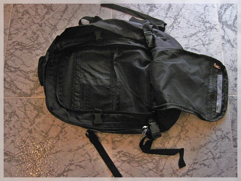 Links von diesem Netz siehst du ein kleines Netzfach mit Reißverschluss. Er zippt 12 cm auf, H = knapp 10 cm.