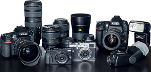 Kameras im Rucksack: Nikon D5 (Action, Konzerte, Sport, Night), Nikon D810 (Landschaft, Architektur) und Fuji X70 (Street).
