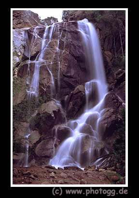 Das Bild ist im Kings Canyon aufgenommen, die Belichtungszeit wurde mit einem Polfilter verlängert, was das Wasser so weich werden läßt. Das Gleiche ist auch mit dem Meer möglich, da braucht man allerdings längere Zeiten.