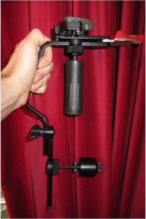 Man positioniert den Camcorder mit den Einstellmöglichkeiten des Systems nahe am Schwerpunkt, unter dem ein meist über eine Kugel gelagerter Handgriff der Kamera Beweglichkeit ermöglicht und gleicht die Schwerpunktungenauigkeiten über das anbringen eines Gegengewichts (individuell für jeden Camcorder) an einem Arm gelagert aus.