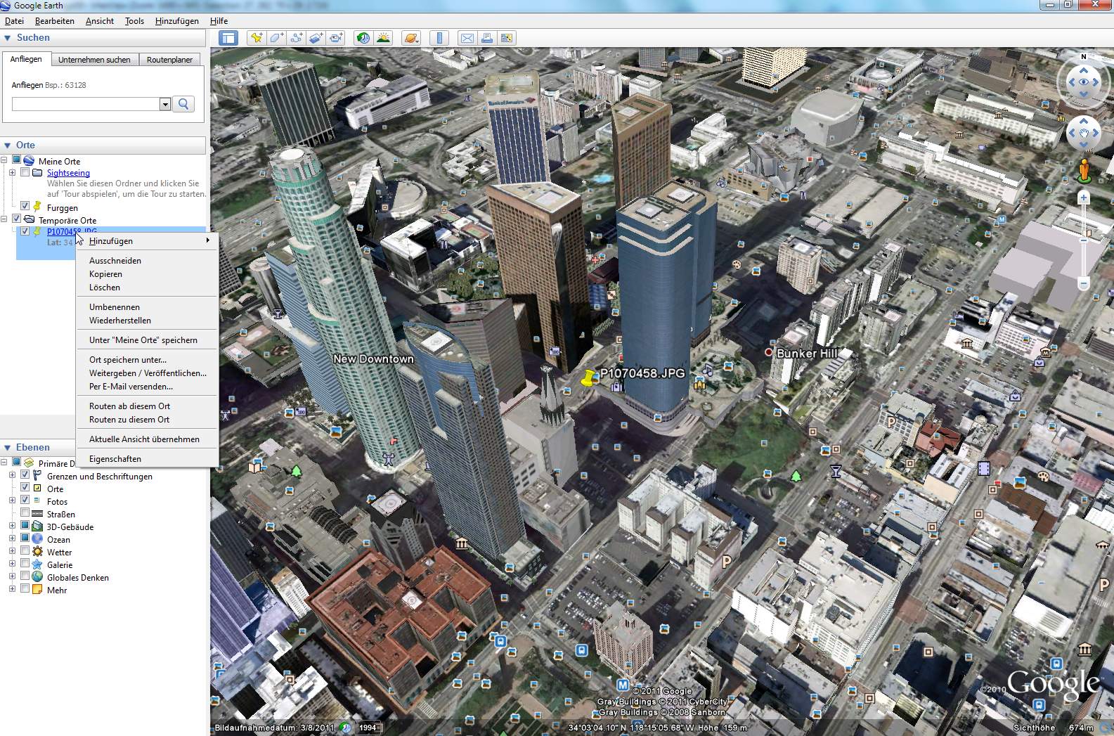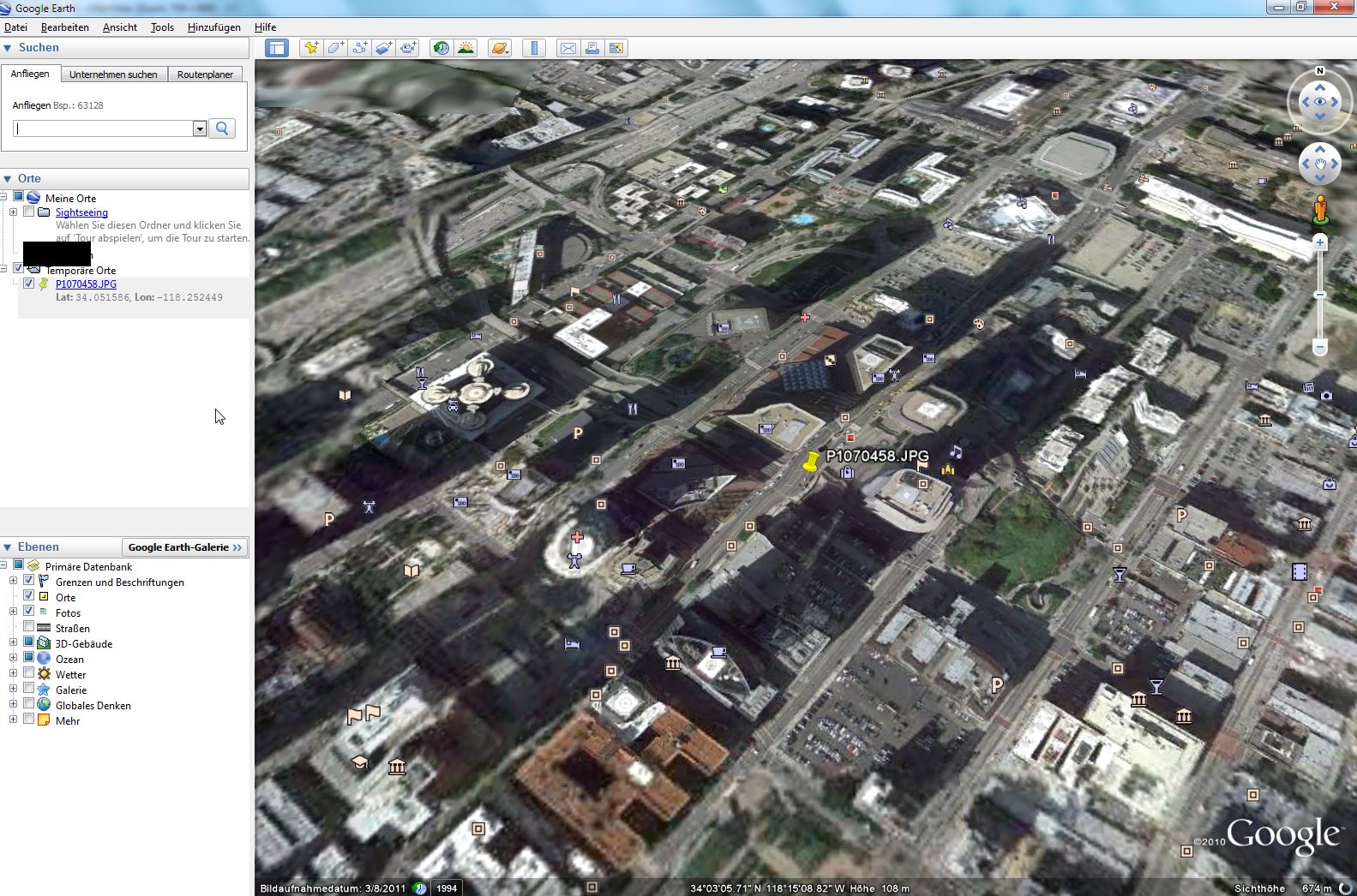 Man klickt im EXIF-Fenster auf "View in Google Earth" und der Standort wird in Google Earth herangezoomt: