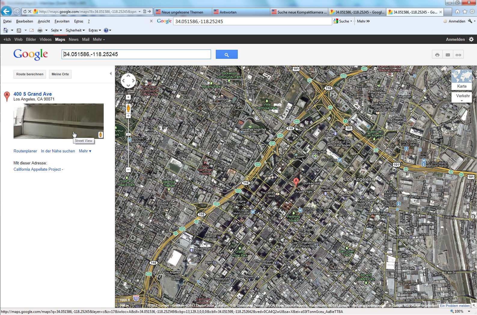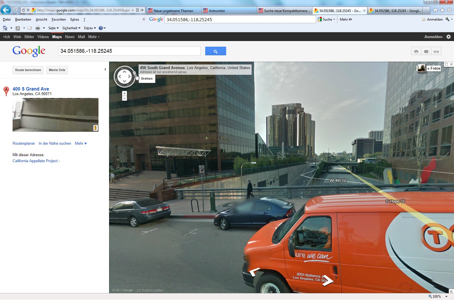 Geht man nun auf StreetView, muß man etwas herumdrehen, bis die Aufnahmerichtung erscheint (das Ding hat ja nur ein GPS und keinen Kompaß - weiß also nicht, wohin Du beim Fotografieren geschaut hast):
