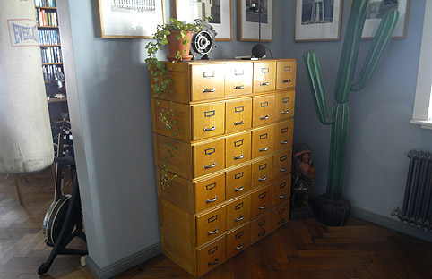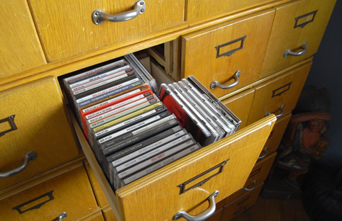 Musik-CDs in alten A5-Karteischränken