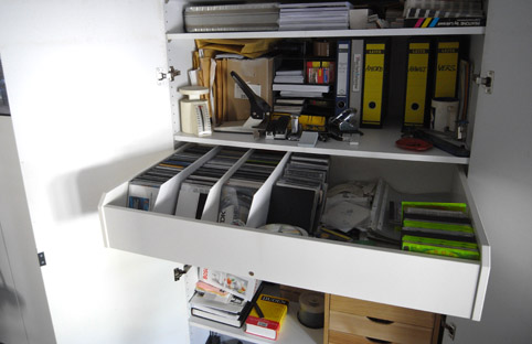 Job-CDs in Schubladen eines Pax-Ikea-Schranks