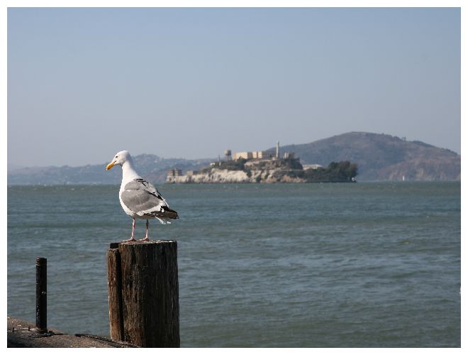 Eine von unzähligen Möwen auf Ellis Island, NYC