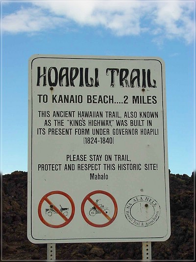 Wir wussten damals nur, dass wir uns ca. 100 yard landeinwärts schlagen mussten, um zum Hoapili (Kings) Trail zu kommen. Das haben wir auch getan und sind teilweise durch Gestrüpp gegangen.