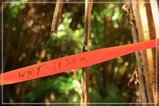 Der Trail ist mit rosaroten und/oder orangefarbenen Bändern markiert, im weiteren Verlauf sind die Bänder manchmal blau. Die Bänder tragen die Aufschrift "WRT xxx m". "WRT" steht für Wright Road Trail.