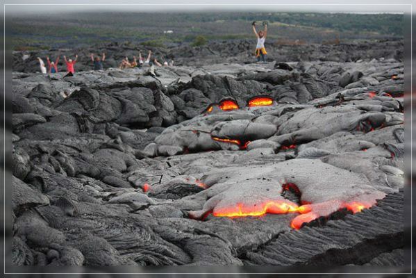 Immer wieder platzte irgendwo die Oberfläche und die Lava quoll heraus und verteilte sich. Irre. Immer wieder neue Eindrücke, mal ein Regenschauer, der uns quasi auf der Haut in der Hitze schon wieder trocknete. Mal ein Regenbogen oder Dampfwolken.