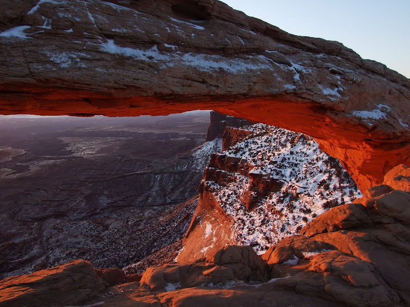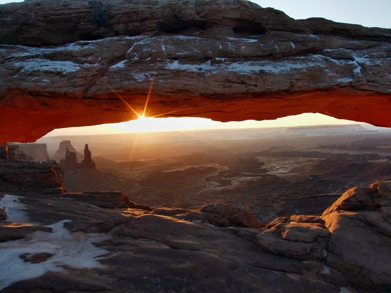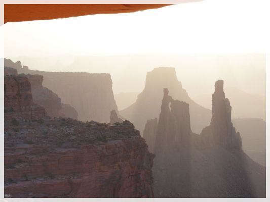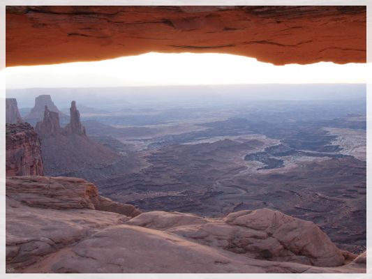 Wir hatten 1/2 Stunde mehr eingerechnet, weil die Dämmerung ja auch schon tolles Licht zaubert und wenn die ersten Strahlen hinter den La Sal Mountains auftauchen, muss es für das "perfekte Foto" schnell gehen, d.h., man muss vorher schon in Position stehen