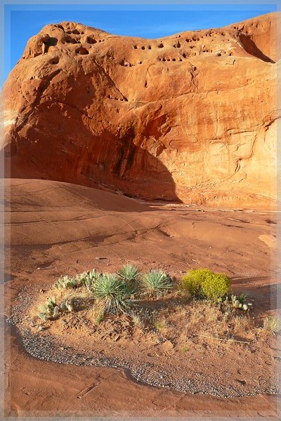 Wer die Hole in the Rock Road (HitRR) im Grand Staircae Escalante National Monument GSENM) mit ihren beiderseits aufgereihten Wanderzielen schon weit genug befahren hat, der kennt auch den Dance Hall Rock (DHR). Dieser befindet sich so bei Meile 37, östlich direkt neben der Dirtroad.