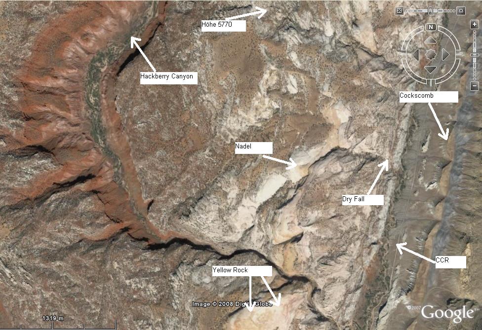 Wir haben leider den Aufstieg zur Höhe 5770 nicht richtig gefunden, bzw. ich habe mich erfolgreich geweigert, weiter in den Felsen herumzukraxeln. Ich hatte schon Schwierigkeiten mit dem Schuttaufstieg, bzw. mehr dem Abstieg zum Yellow Rock.  :oops:
