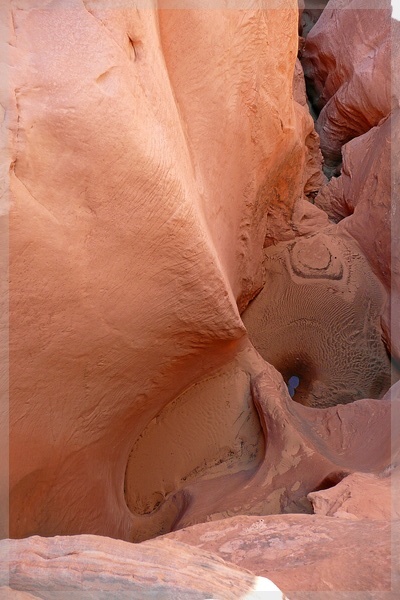 Hier wollen wir eigentlich etwas pausieren und einen Imbiss einwerfen, bevor wir zurück kehren. Jedoch bietet sich nicht so recht ein geeignetes schattiges Fleckchen an, das uns vor der inzwischen doch recht starken Sonnenstrahlung und großen Hitze schützen könnte. Außerdem weht hier doch ein recht kräftiger Wind Sandschwaden umher, die dazu geeignet waren, uns die „Suppe“ zu vers(anden) und das knirscht immer so unangenehm zwischen den Zähnen. Wir beschließen daher, für die wohlverdiente Siesta wieder ein Stück in die farbenfrohere Sektion des Canyons zurück zu laufen.