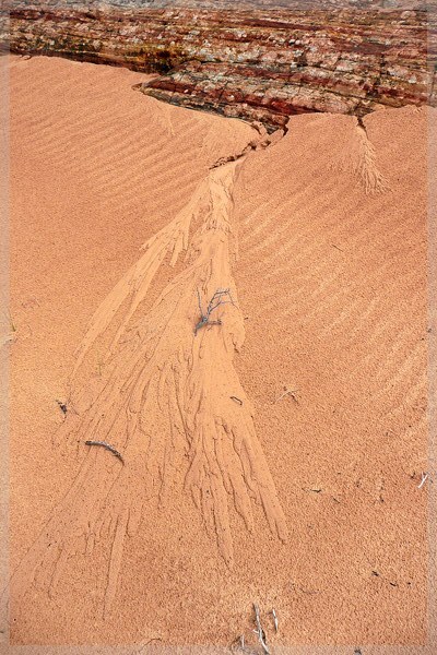 … da hörte doch „leider“ der Regenguss plötzlich auf. Die Flut war im Keim erstickt und hinterließ nichts, als ab und an ein paar schöne Muster im tiefen Sand …