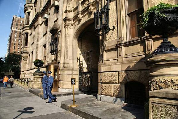 Stimmt, am Eingang des Dakota Buildings auf der 3. Stufe. Links und rechts vom Eingang sind Laternen an der Hauswand mit "ewigen Kerzen" drin.