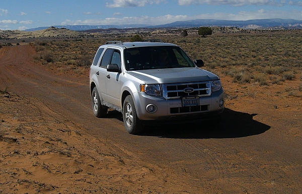 der Ford ist nur bedingt gelaendegaengig, schon gar nicht auf Strecken, die ueber Felsstufen gehen und wo man ordentlich krabbeln muss. Es fehlt das Sperrdifferenzial, und freunde von uns hatten uns auf ein paar Strecken begleiytetr und sind klaeglich gescheitert. Ganz einfach, weil die Hinterraeder durchgedreht haben und der Escape schon an einfachen Strecken wie auf dem Weg zum Tusher Tunnel nicht mehr weiter kam.