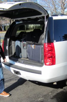 Bei Reisende unter 100 Kilo oder 1,9 Meter wird es mit 3 Leuten auf der Rückbank wohl bequemer sein, als mit einen rutschenden, kantigen Koffer, den man fast ununterbrochen festhalten muss. Da würde ich dann eher versuchen, die Mitreisenden von Koffern auf große Reisetachen umzustellen. In die großen passt genau so viel wie in einen Koffer und davon kriegt man wegen der bessern Form locker 6 hinter die dritte Reihe.