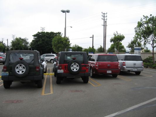 Ich habe am Freitag bei der Rückgabe extra noch einmal auf dem Parkplatz geschaut. Da war etwas mehr Auswahl als bei der Anmietung. (siehe Foto) Die Fullsize SUV stehen in LAX alle bei "Best in Class", eine Fullsize Line gibt es dort nicht. Am Freitag habe ich in dieser Line auch 2 Jeep Wrangler gefunden. Dacht die gibt´s nur auf Hawaii zu mieten....  (Foto 2)