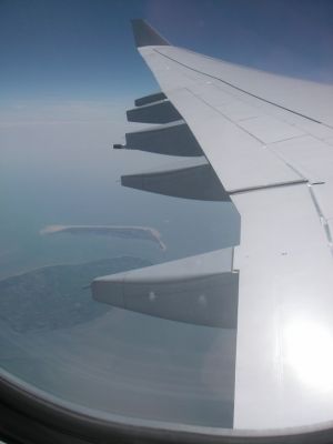 Irgendwie war ich mich nicht sicher, ich hätte Sylt näher dran erwartet (müsste rechts unter der Tragfläche sein)
