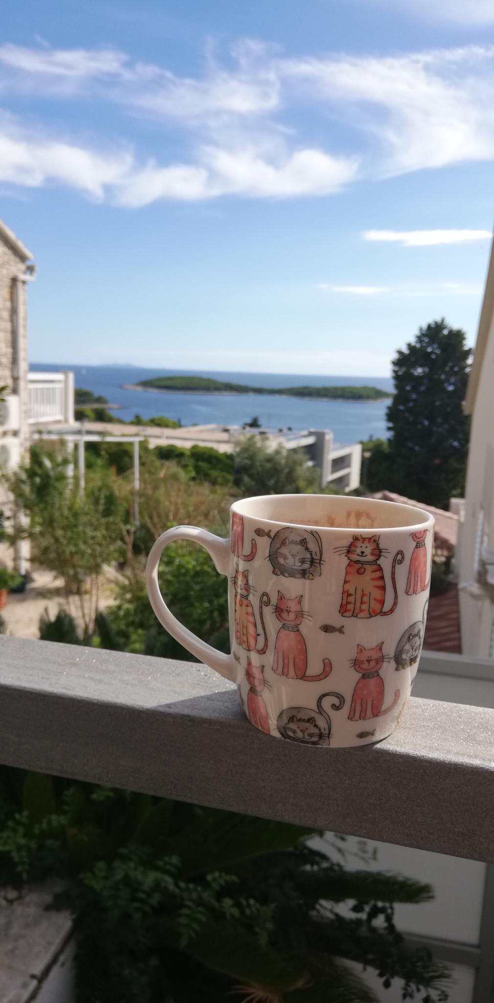 Die Tasse steht auf Hvar, die Frage ist: Welche Insel sehen wir da?