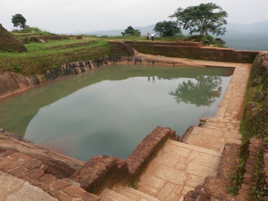 Wir befinden uns auf dem Sigiriya, einem Felsmonolithen in Sri Lanka. Neben dem Becken gibt es dort auch Ruinen eines alten Königspalastes.