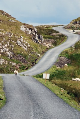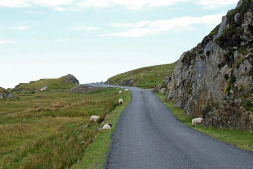 Von hier aus sind es nur noch ein paar hundert Meter bis zu den Slieve League die sich allerdings hinziehen, da wir immer wieder warten müssen bis die Schafe für uns die Straße frei machen. :wink: