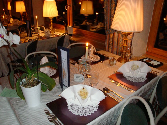 Das Essen ist immer vorzüglich dort: jeden Abend ein 5-Gänge Menu, der erste Gang von der Salatbar, beim Rest meist Auswahl zwischen 2 Gängen und wie immer sehr lecker. Auch mit der Tischdeko geben sie sich sehr viel Mühe, jeden Abend ist der Tisch anders gedeckt. An Wein haben wir es auch nicht fehlen lassen und nach dem Essen trinkt man dann einen Absacker an der Bar.