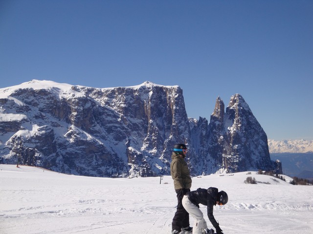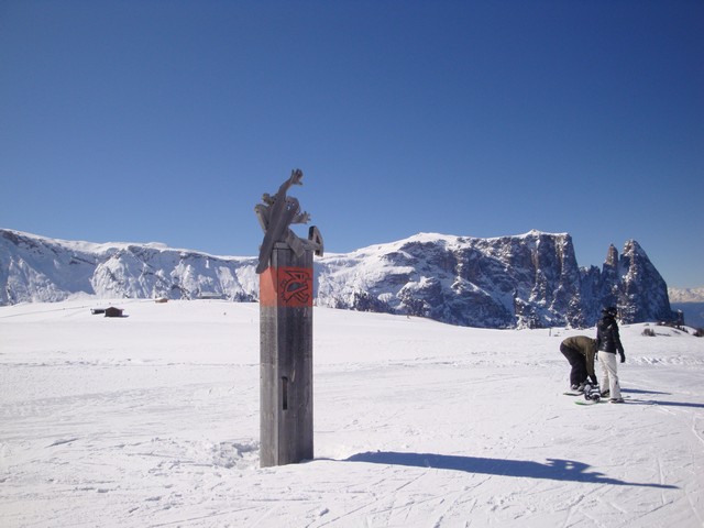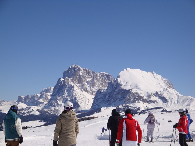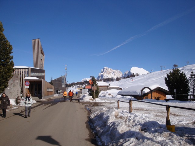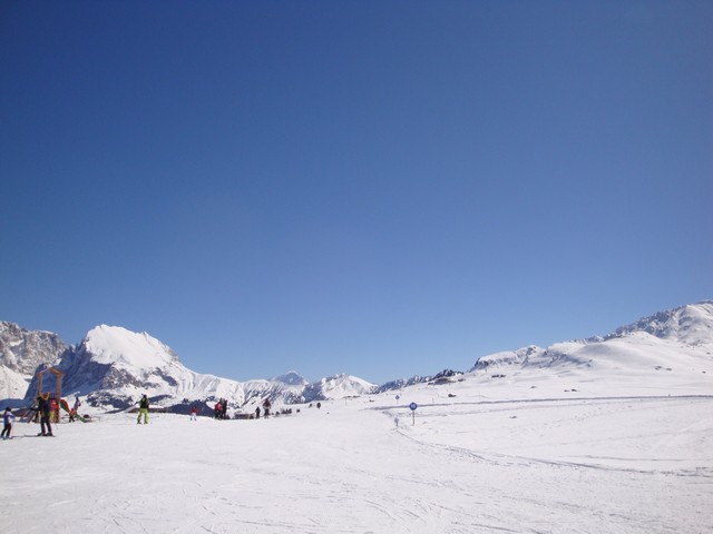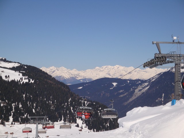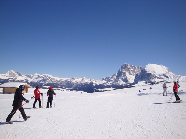 es war erstaunlich wenig los, man brauchte nie länger als 1,2 Minuten am Lift anstehen. So richtig voll habe ich es hier auch noch nie erlebt, entweder verteilt es sich gut über die vielen Lifte oder das Gebiet ist für viele zu einfach. Für mich ist das ein großer Pluspunkt neben dem tollen Panorama dass es hier nie überfüllt ist (jedenfalls nicht im März, im tiefsten Winter waren wir hier noch nicht). So leer wie dieses Jahr war es aber noch nie. Im Hotel meinten die Angestellten, dass man in Italien die Krise schon merkt. Es kommen weniger Italiener, ist auch kein Wunder wenn der Skipass schon 46 €uro kostet.