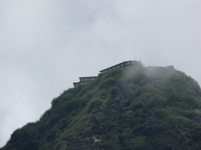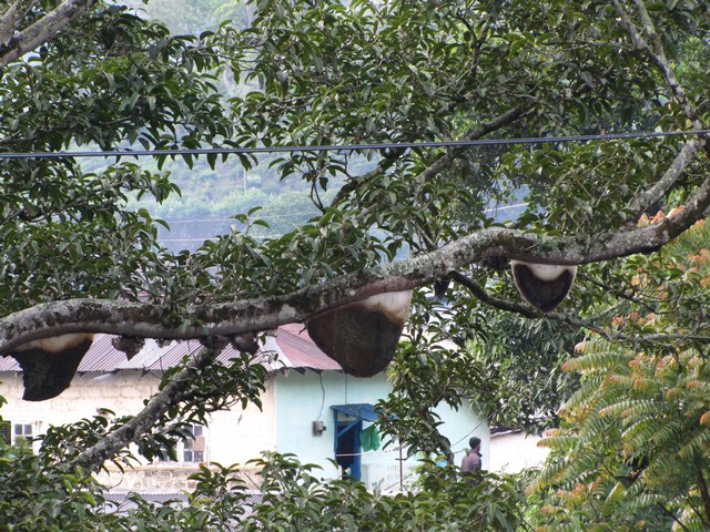 auf den Bäumen turnen Languren, während sich Manju und mein Freund auf einer Mauer sitzend unterhalten schaue ich den Affen beim Blätterfressen zu. Ich dachte eigentlich die ernähren sich von Obst aber die Blätter scheinen auch gut zu schmecken. Kurz bevor die Zeremonie beginnt formiert sich eine Schlange am Tempeleingang und wir stellen uns dazu (mit dem schweren Teller abwechselnd in der Hand). Blöderweise beginnt es zu regnen kurz bevor wir den Tempel betreten können. Im Tempel herrscht ein totales Gedränge. Manju reicht einem Mönch sein Schale, dieser schneidet vom Obst jeweils ein symbolisches Stück weg und nimmt den Geldschein runter, spricht ein Gebet und gibt uns die Schale zurück, das hat keine Minute gedauert und es stehen mehrere Mönche nebeneinander, die von den Gläubigen Obstschalen in Empfang nehmen. Man kann sich kaum umdrehen so voll ist es. Gleich danach werden wir von den Nachfolgenden nach draußen gedrängt. Irgendwie ist mir das viel sympatischer als ein einstündiger Gottesdienst in der Kirche