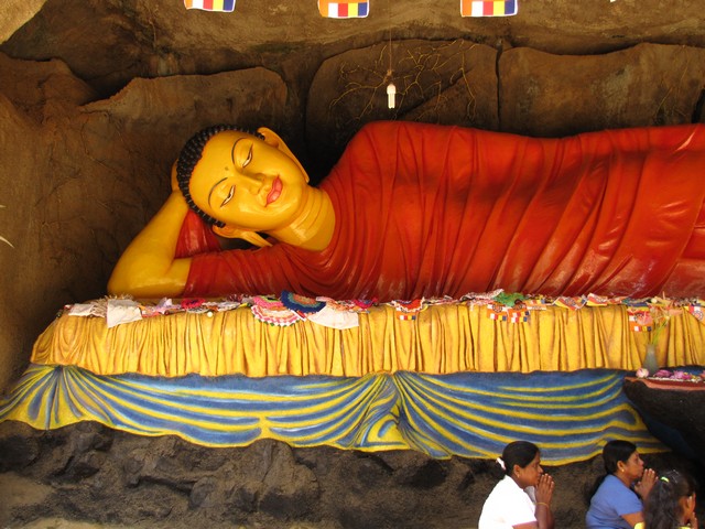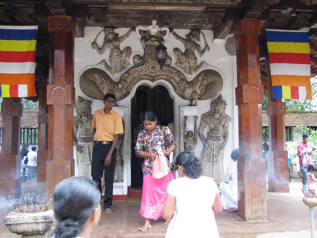 Uns sind ja schon öfter Mönche aufgefallen in orangen oder dunkelroten Gewändern. Manju erklärt dass Mönche mit hellen Kutten ganz normal im Dorf mit der Bevölkerung leben während die dunkelrot gewandeten Mönche im Wald leben und nur einmal am Tag ins Dorf kommen um ihr Essen zu erbetteln (Selbstkasteiung gehört zu der laut Manju in Sri Lanka praktizierten Form des „orthodoxen Buddhismus“). Mönch ist man sein Leben lang (also nicht wie in anderen buddhistischen Ländern wo man ein Jahr ins Kloster geht und dann ein weltliches Leben lebt). Kinder als Mönche sind noch Mönch auf Probe, erst wenn sie erwachsen sind müssen sie sich entschieden. Es gibt übrigens auch Nonnen (wir haben aber nie welche gesehen).