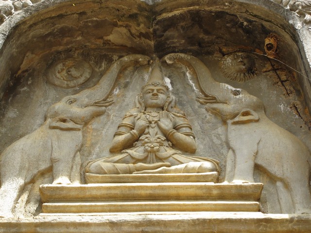 im Eingangsbereich steht der Tempelelefant mit seinem Mahut: